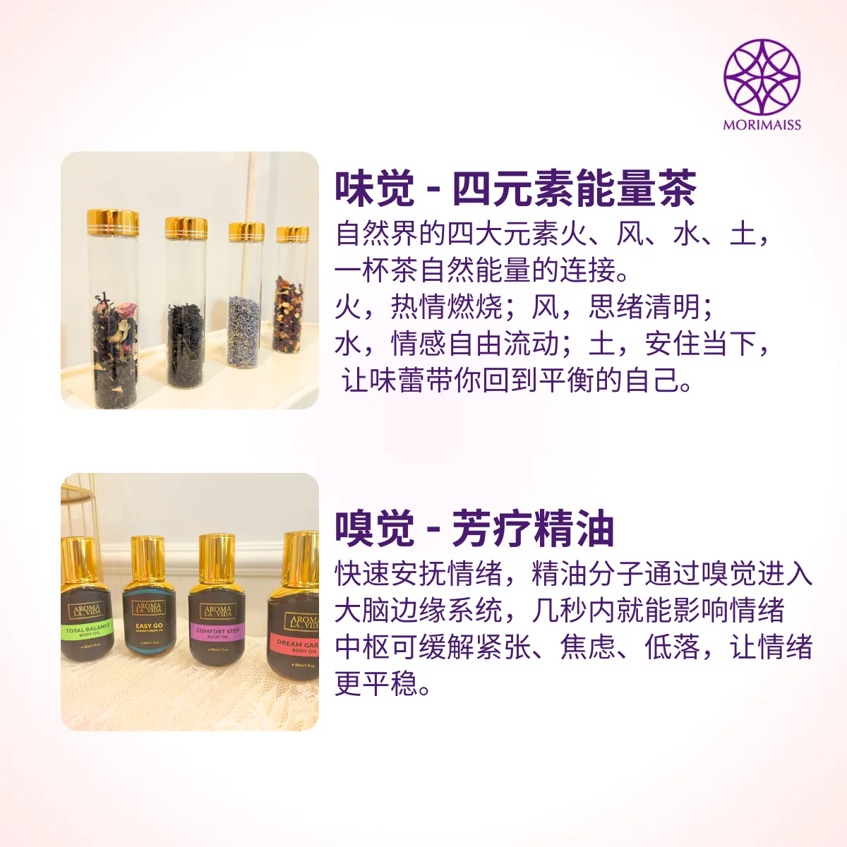 孕妈妈也能安心体验六感心灵疗愈,只是在享用四元素能量茶时,我们会为你避开含咖啡因的配方,温和又安全。